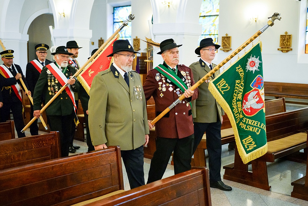 Sztandar Zjednoczenia Bractw Kurkowych Rzeczypospolitej Polskiej niesie chorąży zjednoczenia brat z Jutrosina Marek Balcerek fot. Zb. LBK