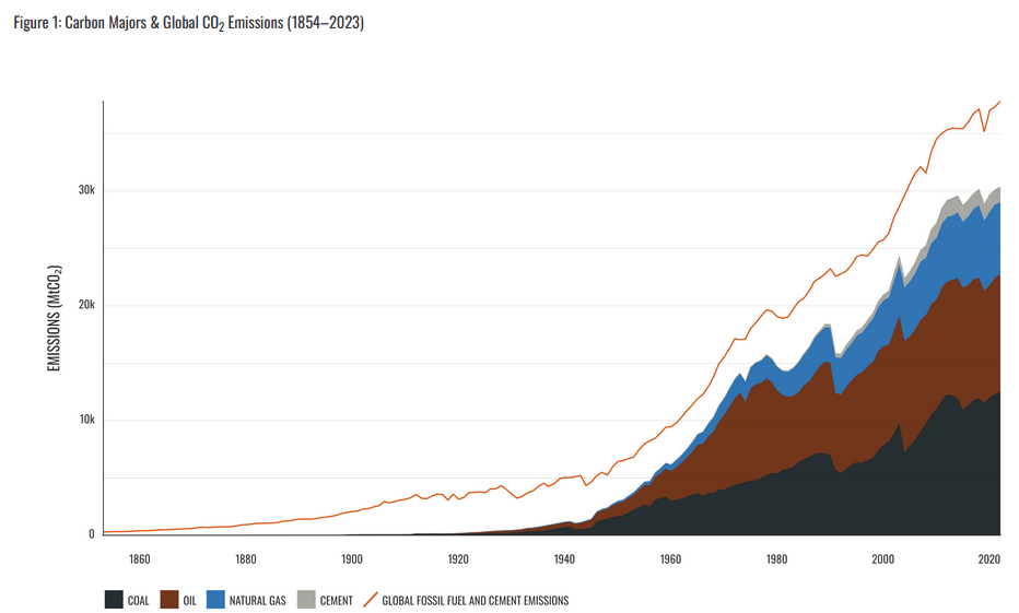 Udział gigantów w emisjach jest niezmiennie duży od czasów rewolucji przemysłowej. Za dwie trzecie emisji CO2 wynikających z wydobycia i spalania węgla, ropy i gazu w okresie od 1854 do 2023 r. odpowiada 180 firm. Jedną trzecią emisji można powiązać z działalnością zaledwie 26 przedsiębiorstw.
