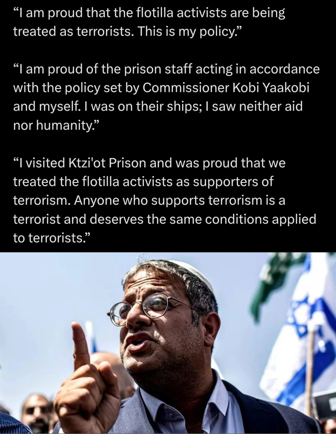 Ersin Celik, turecki dziennikarz i uczestnik Flotylli Sumud w Gazie, powiedział lokalnym mediom, iż był świadkiem, jak siły izraelskie "torturowały Gretę Thunberg. Inni aktywiści podawali podobne relacje na lotnisku w Stambule, twierdząc, iż Thunberg była popychana, kopana i paradowała z izraelską flagą. Powiedzianomu: "Mamy tu żołnierzy, którzy chcą cię zgwałcić"
