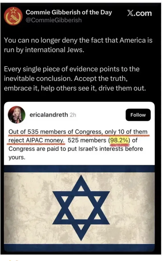 Zdumiewające jest to, iż tak zły kraj jak Izrael otrzymuje rocznie miliardy dolarów od Ameryki, dawniej kraju chrześcijańskiego, ogromne ilości śmiercionośnej broni do użycia przeciwko cywilom i dyplomatyczną przykrywkę dla ludobójstwa. W jaki sposób to sprawi, iż Ameryka znów będzie wielka? Amerykańskie poparcie dla Izraela sprawia, iż Amerykanie są współwinni najgorszych zbrodni przeciwko ludzkości, jakie kiedykolwiek popełniono.