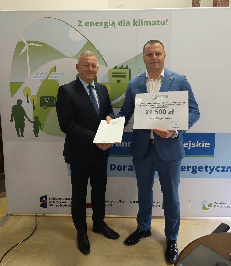- Gmina Magnuszew – 21 500 zł dotacji na modernizację oświetlenia ulicznego poprzez wymianę opraw na energooszczędne,