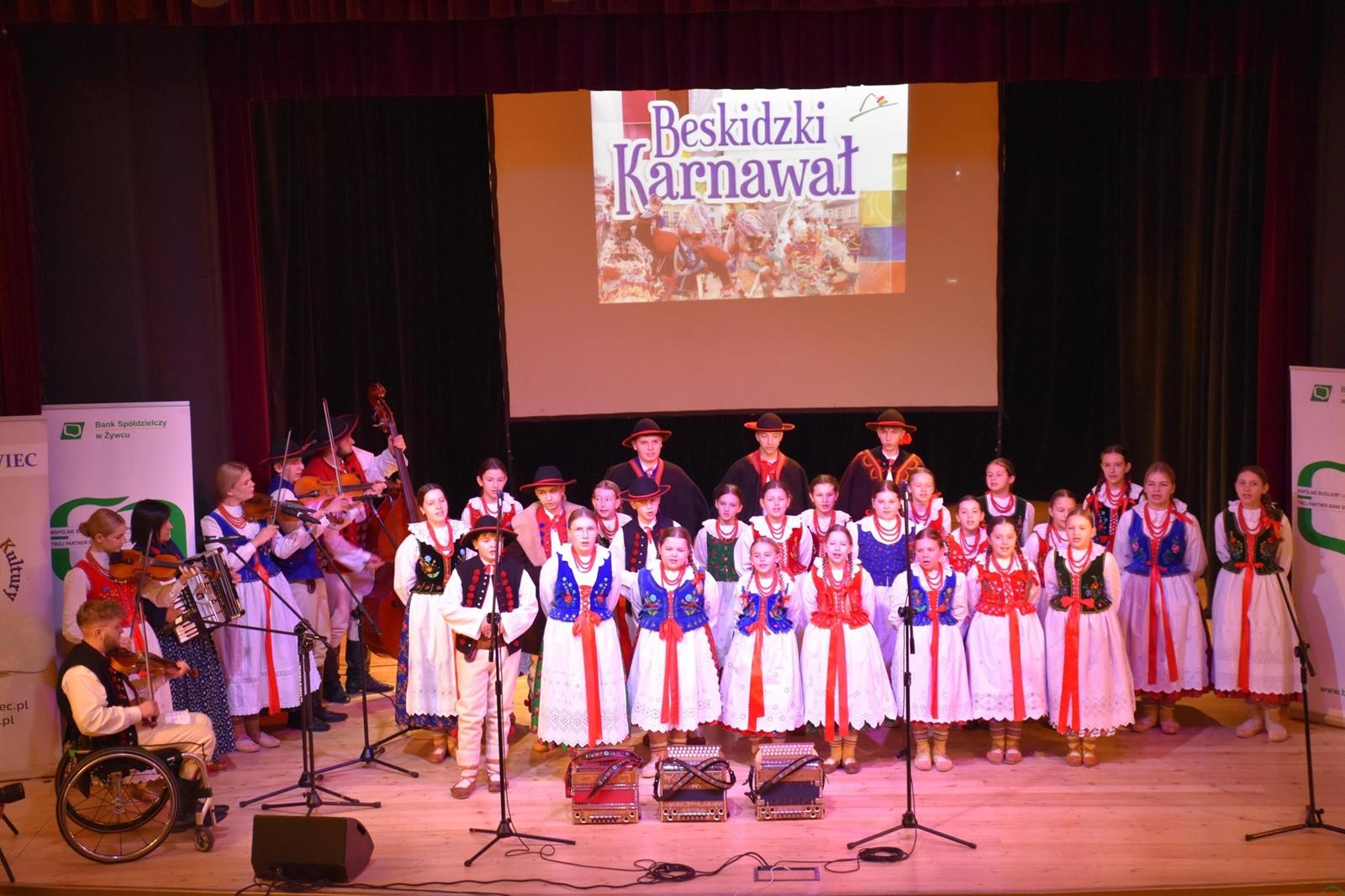 Beskidzki Karnawał, który odbył się wczoraj (31 stycznia) w sali widowiskowej Miejskiego Centrum Kultury w Żywcu, poprzedzony został korowodem grup kolędniczo-obrzędowych i krótkim występami na Rynku (TUTAJ).