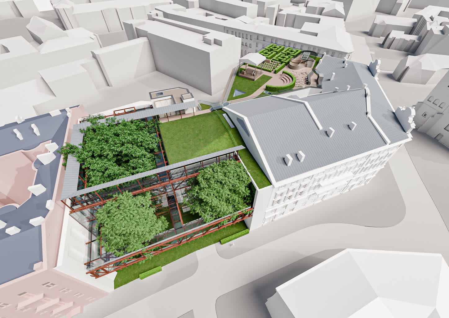 Na dachu budynku zaplanowano ogród i scenę na kameralne spektakle grane latem. Przewidziano także remont i rozbudowę zaplecza teatralnego m.in. pomieszczeń technicznych, sal do prób, garderoby artystów, holi, foyer, części administracyjno-biurowej.