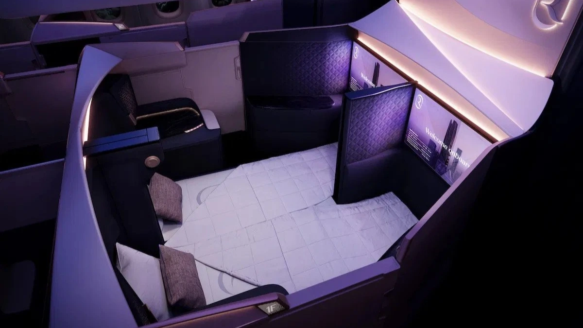 Business class provides comfort for long flights. Lie-flat beds, premium bedding, large screens, and luxury amenity kits are standard.