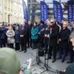 22.12.2025. Kielce. Konferencja prasowa Konfederacji Korony Polskiej. / Fot. Wiktor Taszłow – Radio KielcePodczas konferencji dokonano także oficjalnego otwarcie biura poselskiego Grzegorza Brauna i Włodzimierza Skalika przy ul. Leonarda w Kielcach.