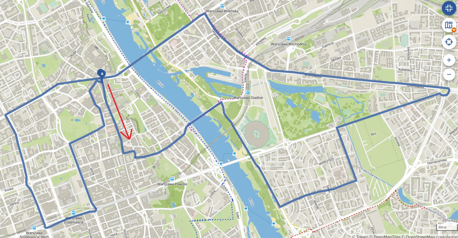 Stamtąd ruszą Krakowskim Przedmieściem, a następnie przejadą ulicą Świętokrzyską w kierunku Wału Miedzeszyńskiego.