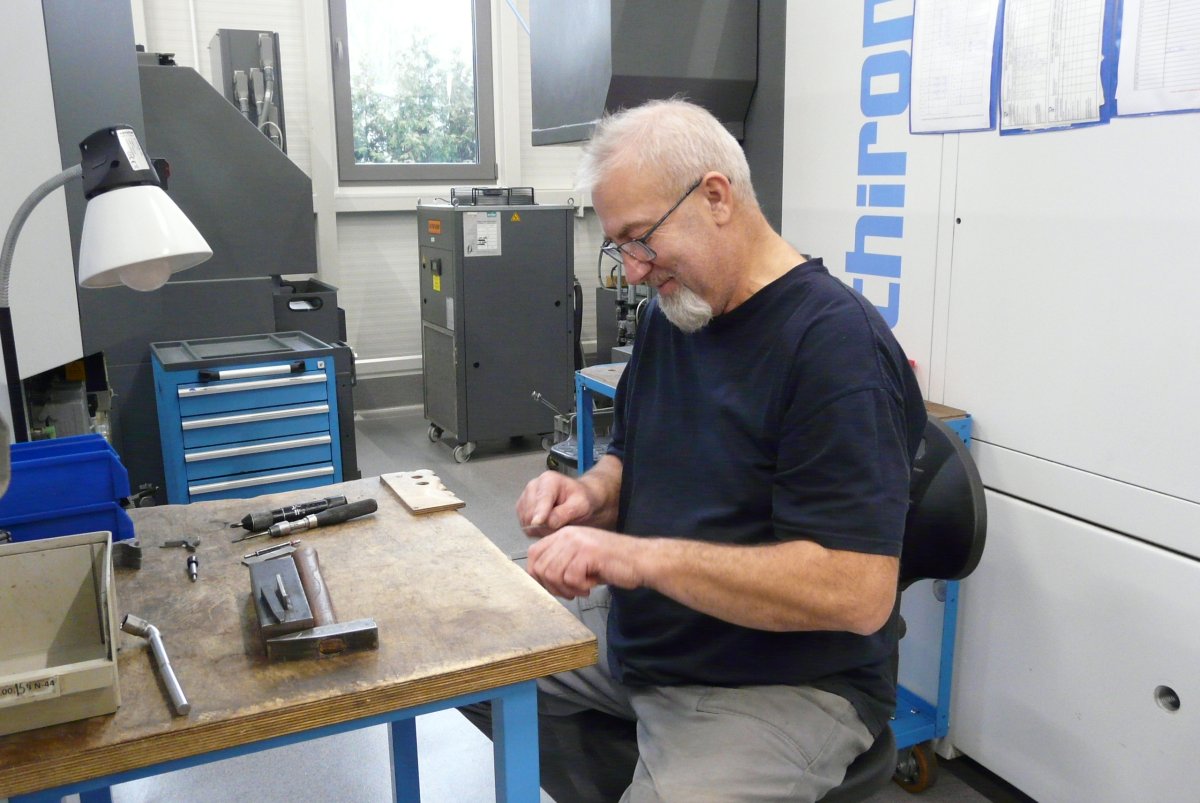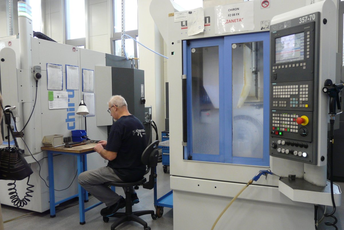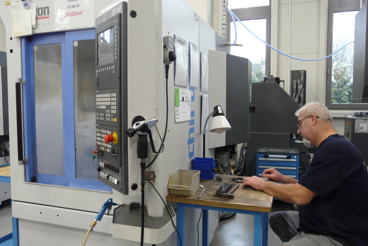 Przy frezarce "Bożena" w nowej hali pracuje pan Jacek