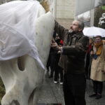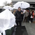 24.10.2025. Kielce. Ul. Warszawska. Uroczyste odsłonięte rzeźb autorstwa Pawła Osóbki, Waldemara Musika i Pawła Witkowskiego / Fot. Jarosław Kubalski – Radio KielcePraca, która pojawiła się w przestrzeni publicznej, cieszy także Pawła Witkowskiego, autora kolejnej.
