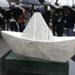 24.10.2025. Kielce. Ul. Warszawska. Uroczyste odsłonięte rzeźb autorstwa Pawła Osóbki, Waldemara Musika i Pawła Witkowskiego / Fot. Jarosław Kubalski – Radio KielceTrzecią rzeźbą jest „Rejs”, a jej autor, Waldemar Musik przyznał, iż ten pomysł od dawna mu towarzyszy.