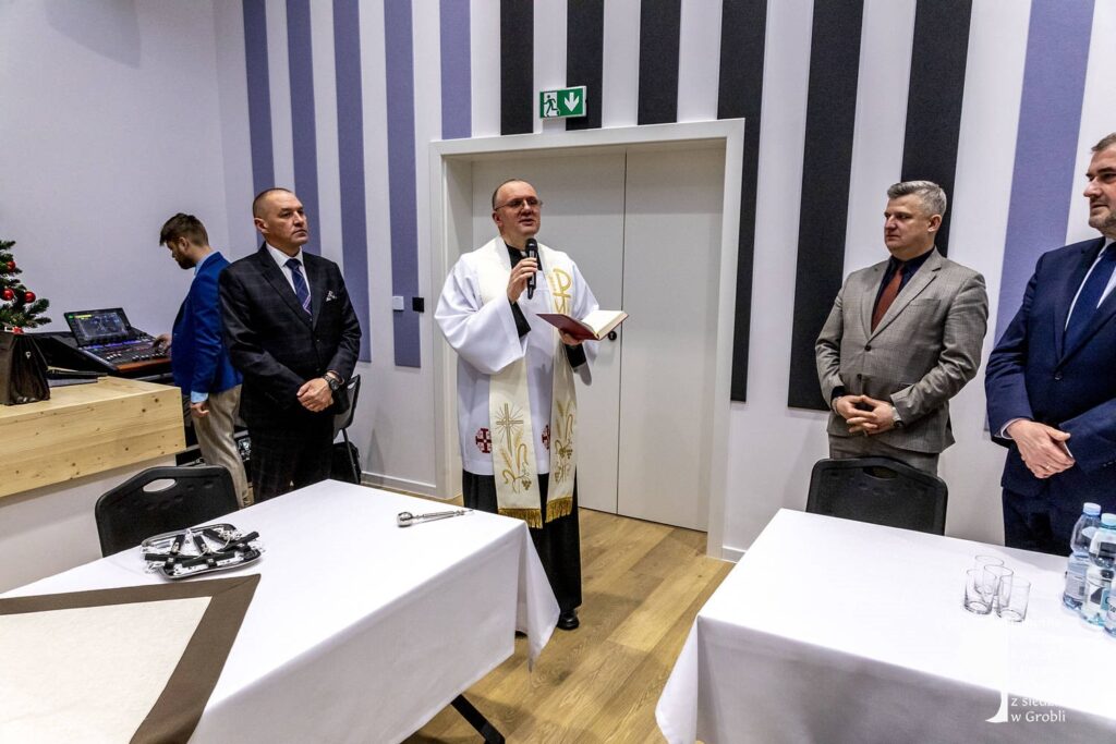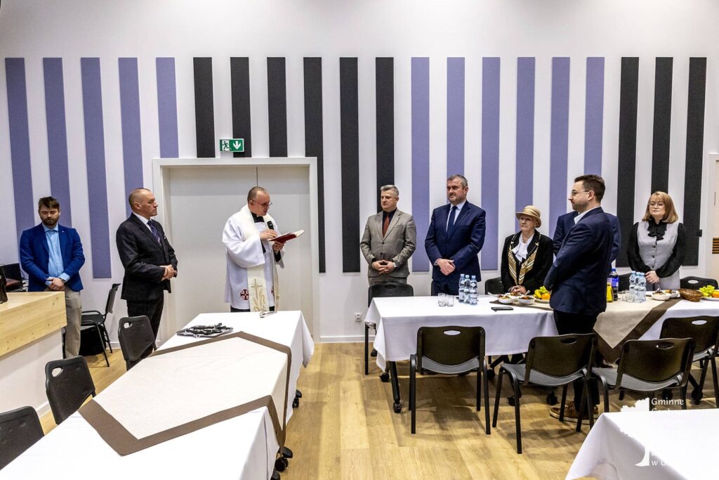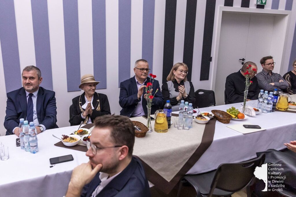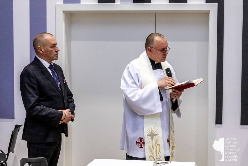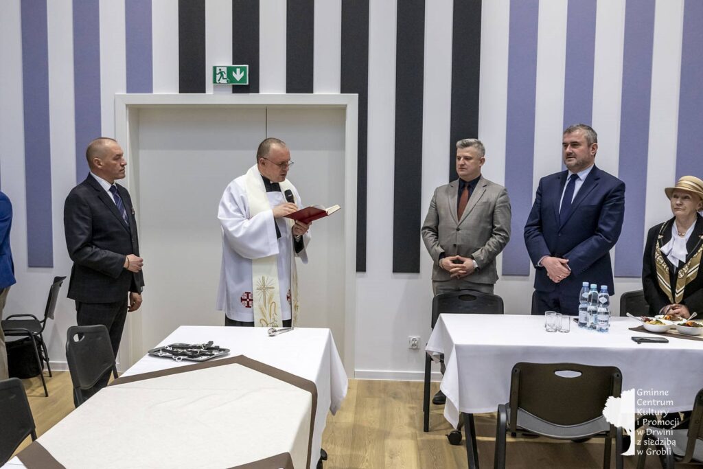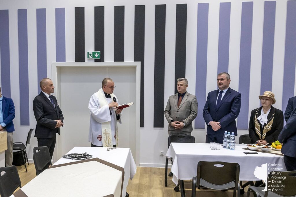 Wśród nich byli między innymi: minister Stanisław Bukowiec, Elżbieta Adamczyk z biura poselskiego poseł Józefy Szczurek-Żelazko, Przewodnicząca Rady Gminy Monika Rzucidło, radni i sołtysi Gminy Drwinia, kierownik Gminnej Biblioteki Publicznej w Drwini Sylwia Gadowska, Józefa Bukowiec. Poświęcenia całego obiektu dokonał proboszcz parafii Grobla Józef Waśko. Podczas otwarcia koncert dali nauczyciele ze Szkoły Muzycznej I stopnia w Mikluszowicach.