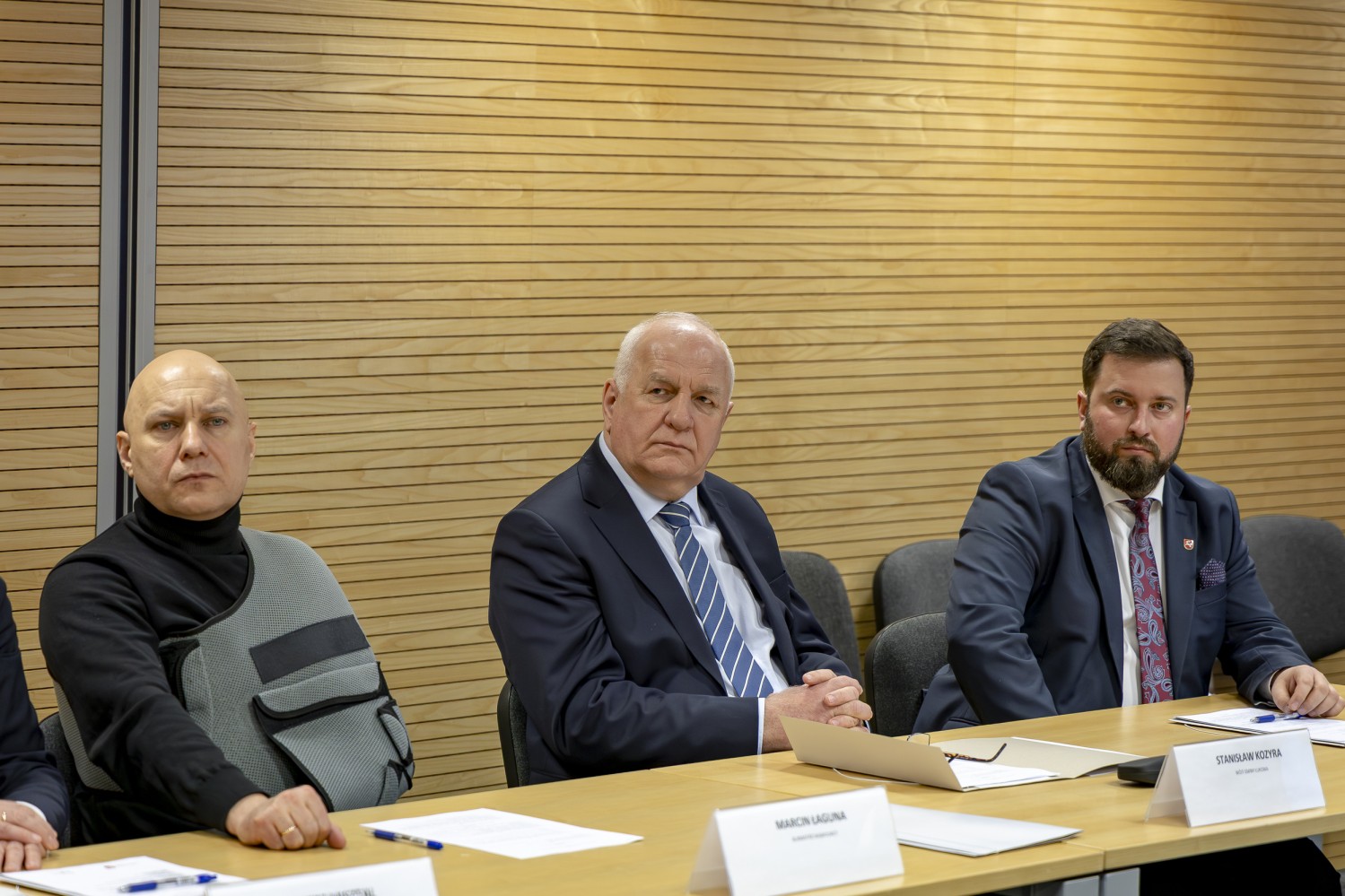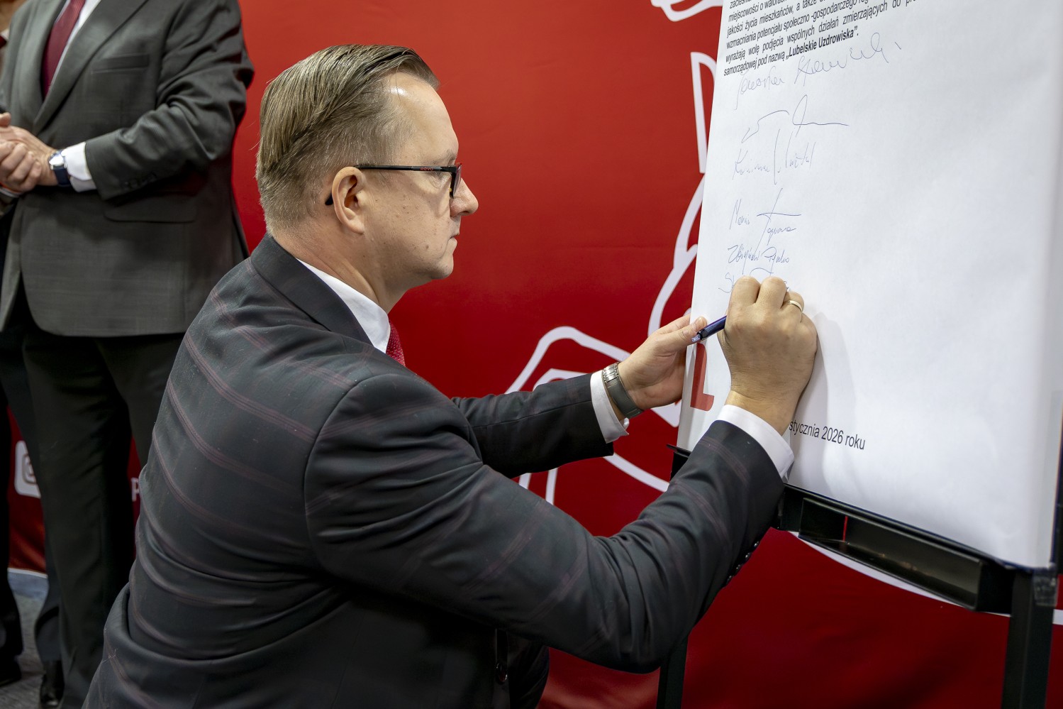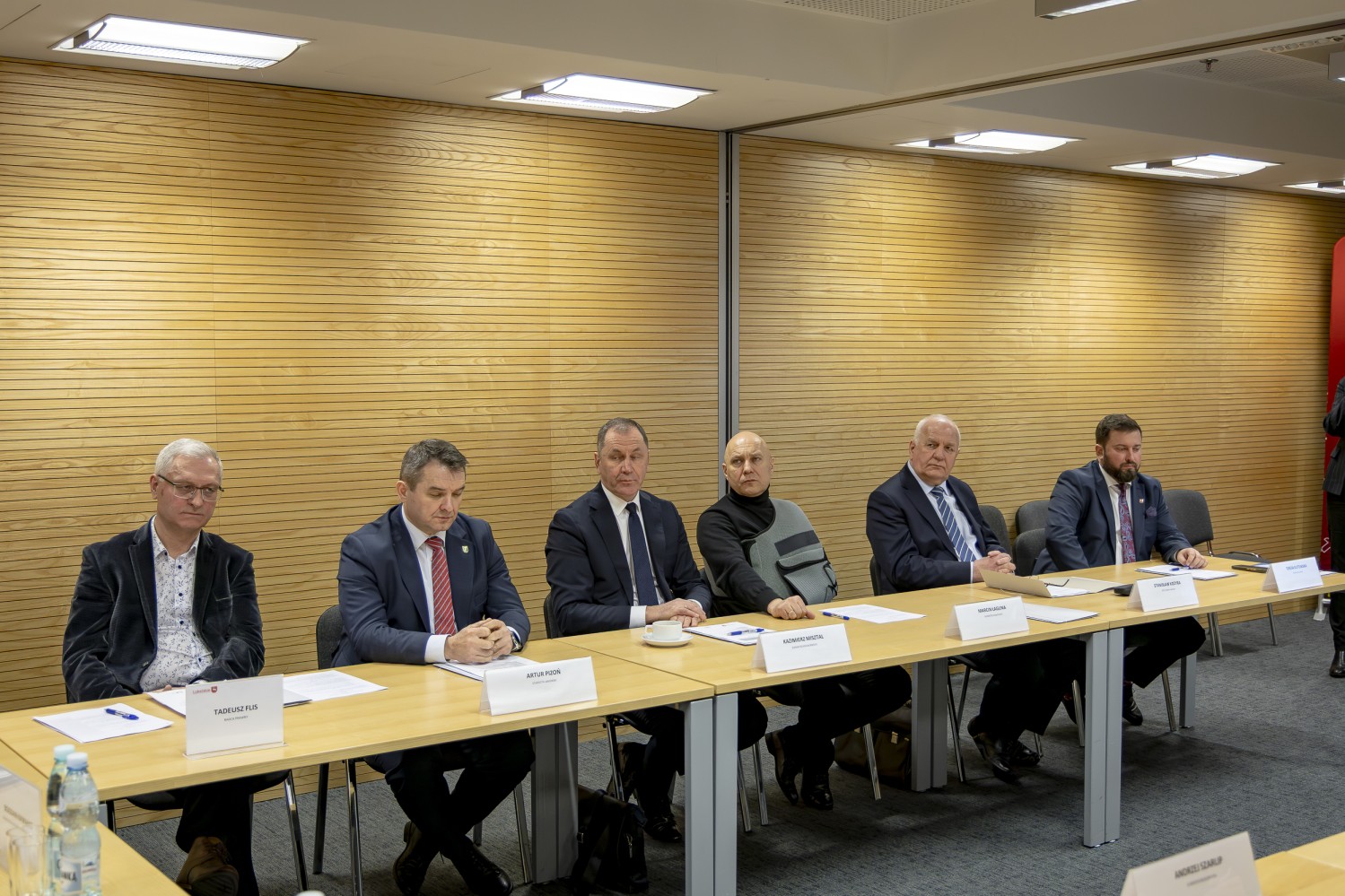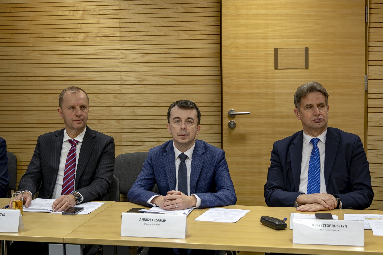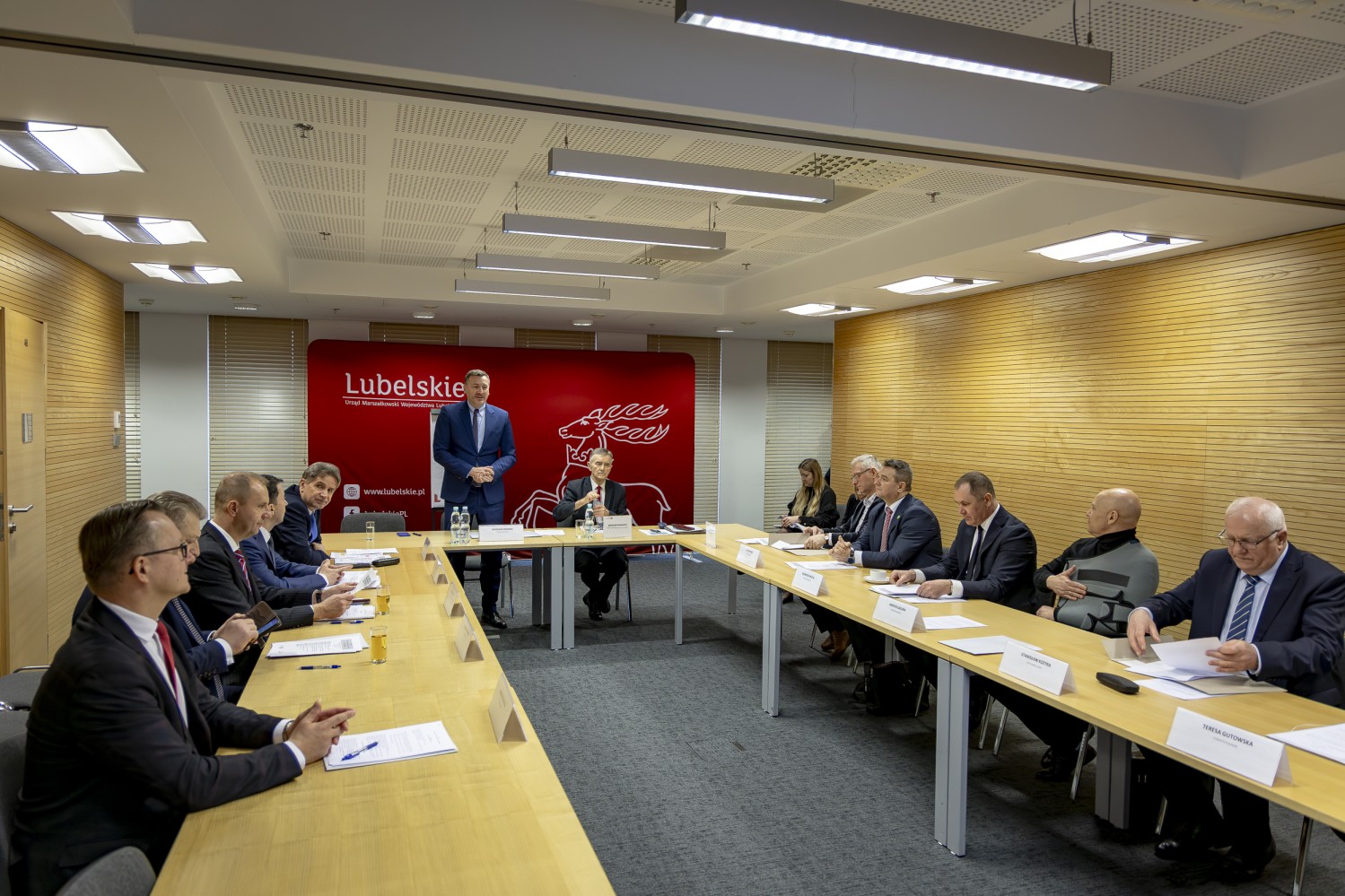 Na grupowym zdjęciu (od lewej): Zbigniew Pyczko – Wójt Biszczy, Andrzej Szarlip – Starosta Biłgorajski, Stanisław Kozyra – Wójt Łukowa, Marcin Łaguna – Burmistrz Wąwolnicy, Kazimierz Misztal – Burmistrz Krasnobrodu, Wiesław Pardyka – Burmistrz Nałęczowa, Jarosław Stawiarski – Marszałek Województwa Lubelskiego, Bogdan Kawałko – Dyrektor Departamentu Strategii i Rozwoju Urzędu Marszałkowskiego w Lublinie, Krzysztof Kołtyś – Burmistrz Janowa, Krzysztof Rusztyn – Wicestarosta Zamojski, Łukasz Skowyra – Członek Zarządu Powiatu w Puławach, Artur Pizoń – Starosta Janowski, Tomasz Skroban – Sekretarz Gminy Susiec.