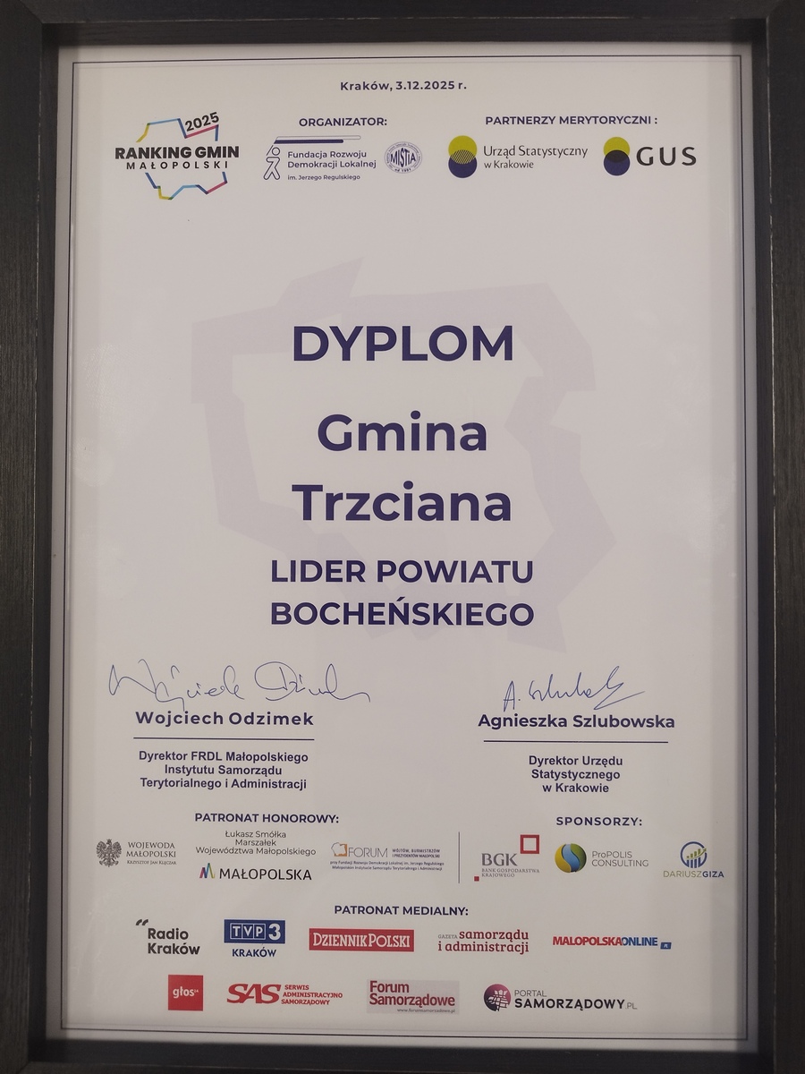 Najważniejsze osiągnięcia Gminy Trzciana w Rankingu Gmin Małopolski 2025