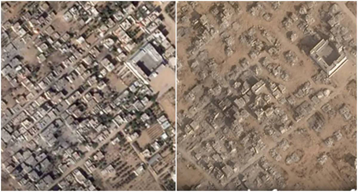 Porównanie zdjęć satelitarnych tego obszaru wykonanych na początku wojny w październiku 2023 r. ze zdjęciami wykonanymi przed okresem zawieszenia broni pokazuje, iż wiele budynków nie uległo większym zmianom.