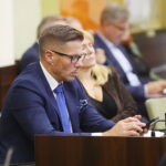 06.11.2025. Kielce. Sesja rady miasta / Fot. Wiktor Taszłow – Radio KielceRadni opozycyjni przekonywali, iż miasto powinno rozważyć również inne możliwości finansowania budowy parkingu podziemnego pod Placem Wolności. Jako jedną z takich form, przewodniczący klubu Prawa i Sprawiedliwości, Marcin Stępniewski wskazuje obligacje przychodowe.