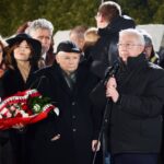 16.01.2026. Starachowice. Prezes PiS Jarosław Kaczyński przy tablicach pamiątkowych ku czci Jadwigi i Lecha Kaczyńskich / Fot. PAP/Adam KumorowiczJarosław Kaczyński odniósł się także do współczesnej sytuacji w kraju. Mówił, iż dziś ważą się losy świata i dzisiejsza uroczystość to element walki o to, jaka będzie przyszłość świata i Polski.