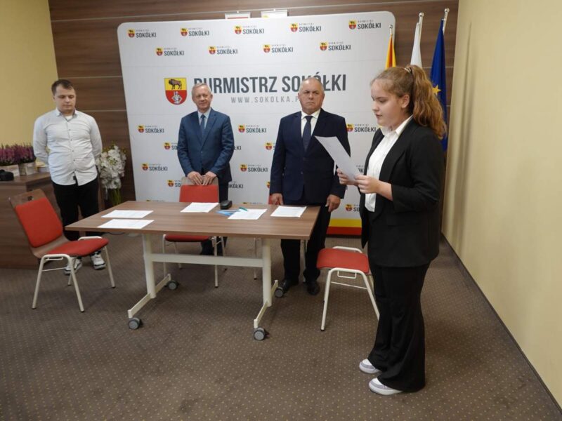 W obecności Zastępcy Burmistrza Sokółki Adama Kowalczuka i Przewodniczącego Rady Miejskiej w Sokółce Andrzeja Kirpszy, 16 uczniów sokólskich szkół podstawowych i ponadpodstawowych złożyło ślubowanie.