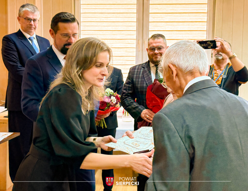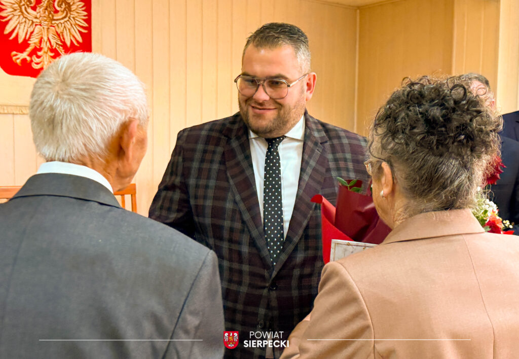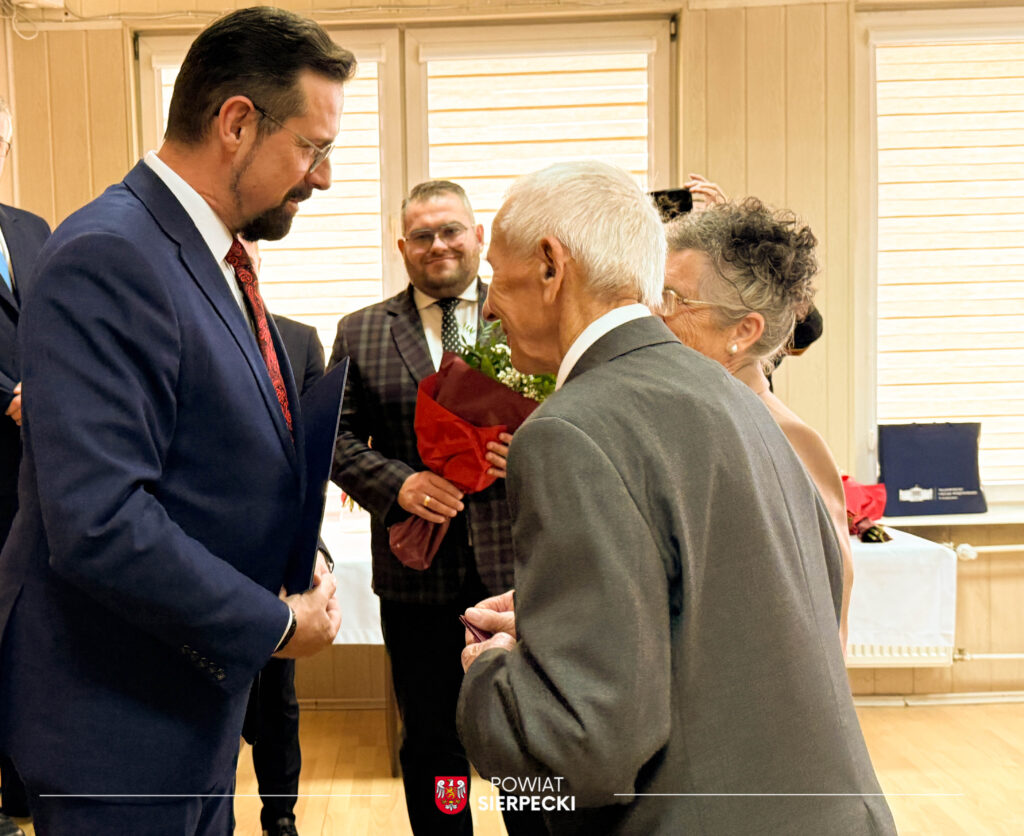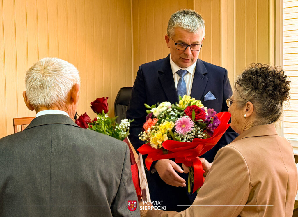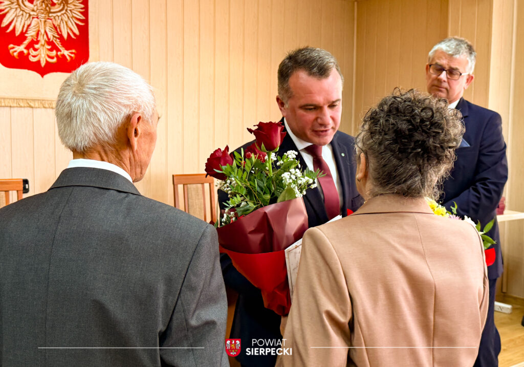 W uroczystości uczestniczył również Pan Przemysław Burzyński Starosta Sierpecki, który złożył Jubilatom serdeczne życzenia oraz wręczył kwiaty.