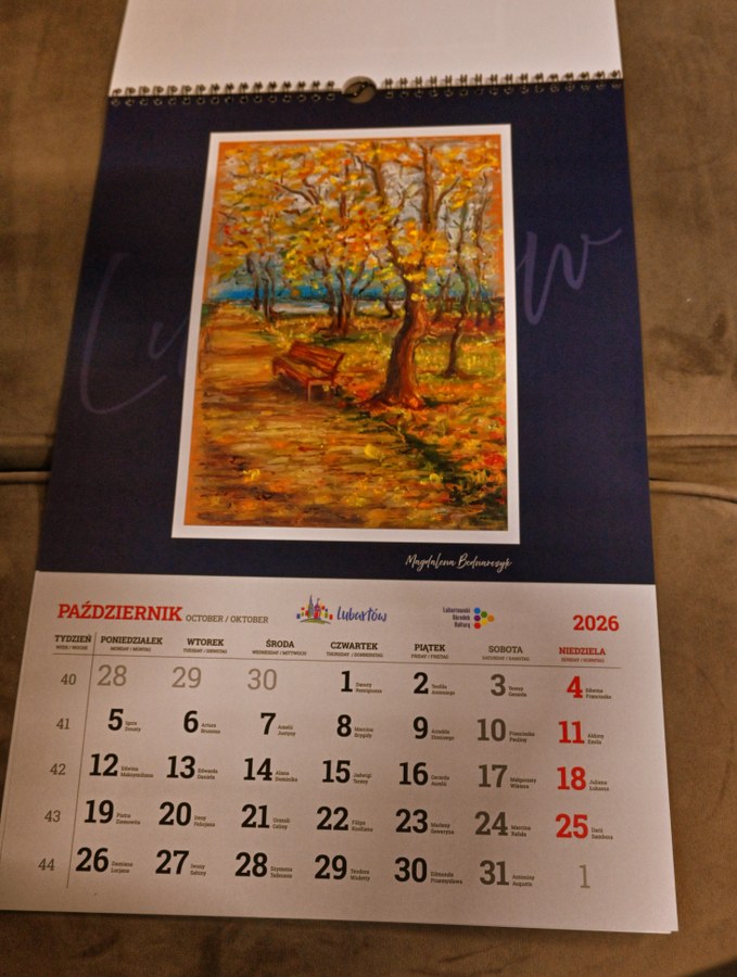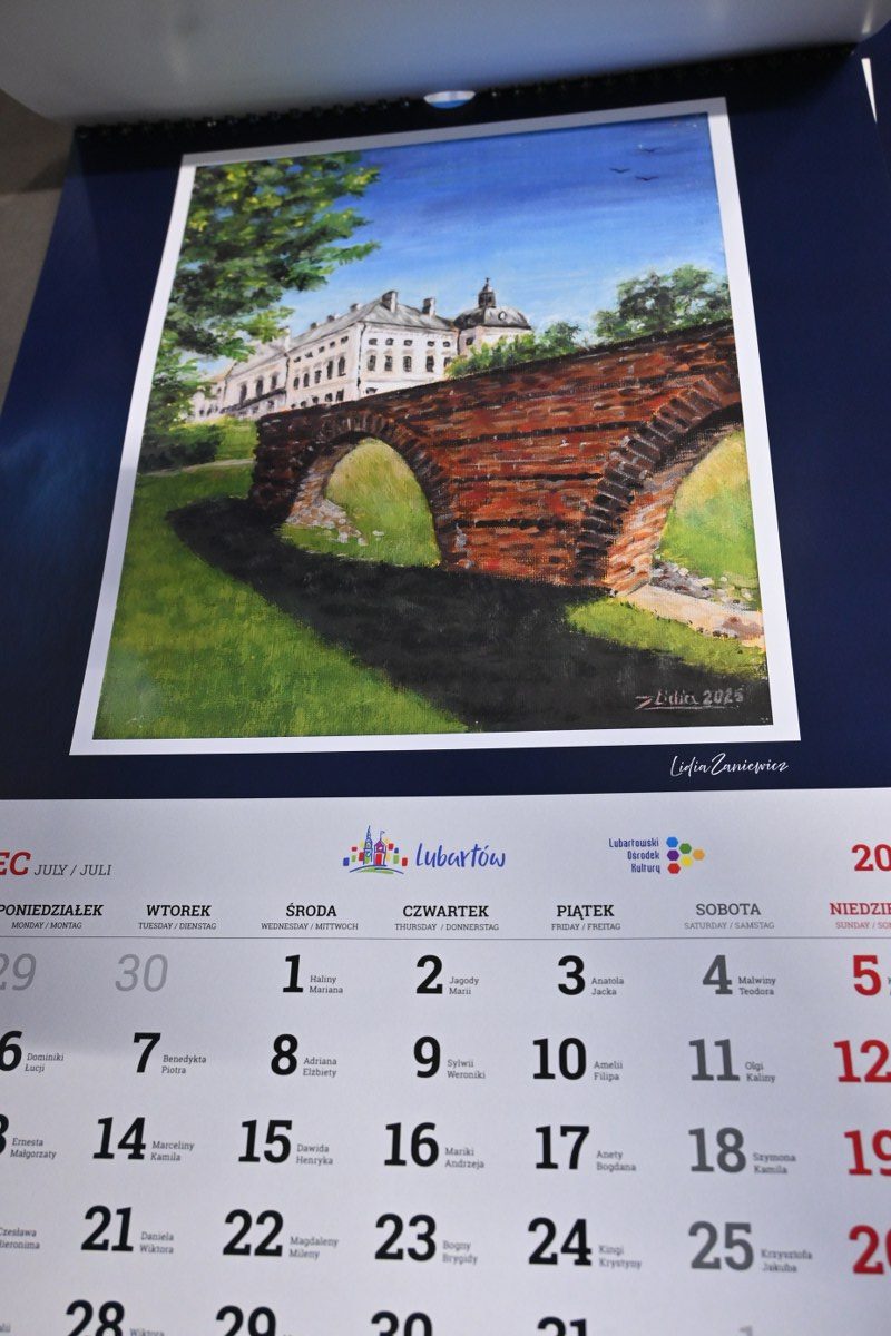 Na kartach kalendarza znalazły się prace autorstwa: Wiktorii Czerskiej, Kornelii Sapieji, Anny Radomskiej, Lidii Zaniewicz, Magdaleny Bednarczyk, Julii Korneluk, Wiesławy Kucharzyk, Daryny Lewin, Zofii Różyk, Barbary Dybały oraz Sylwii Łabędź. Zestawienie twórców reprezentujących różne pokolenia podkreśla ideę projektu, którego celem było budowanie dialogu międzypokoleniowego poprzez sztukę i wspólne spojrzenie na przestrzeń miasta. Kalendarze dostępne są w sprzedaży w Punkcie Informacji Turystycznej i – jak podkreślają organizatorzy – będą oferowane również po świętach. To wydawnictwa, które nie tylko odmierzają czas, ale także dokumentują lokalną aktywność kulturalną i wspierają promocję lubartowskich inicjatyw artystycznych.
