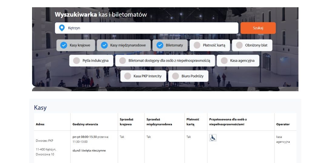 - w Kętrzynie funkcjonuje kasa agencyjna Intercity.
