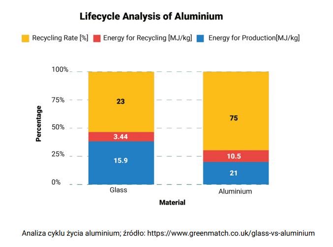 – Są natomiast surowce, które można recyklować bez utraty jakości – tłumaczył Lachowicz. – Jest to szkło i aluminium. o ile aluminium już raz przywieźliśmy (czy boksyty i wytopiliśmy, czy to przywieźliśmy już gotowe aluminium) do kraju, to możemy je recyklować bez utraty jakości. Jest to super rozwiązaniem, ponieważ raz coś przywieźliśmy i zrobiliśmy, a to nam obniża emisję, bo najwięcej emisji CO2 w przypadku produkcji aluminium jest na tym pierwszym etapie. – rekomendował autor raportu