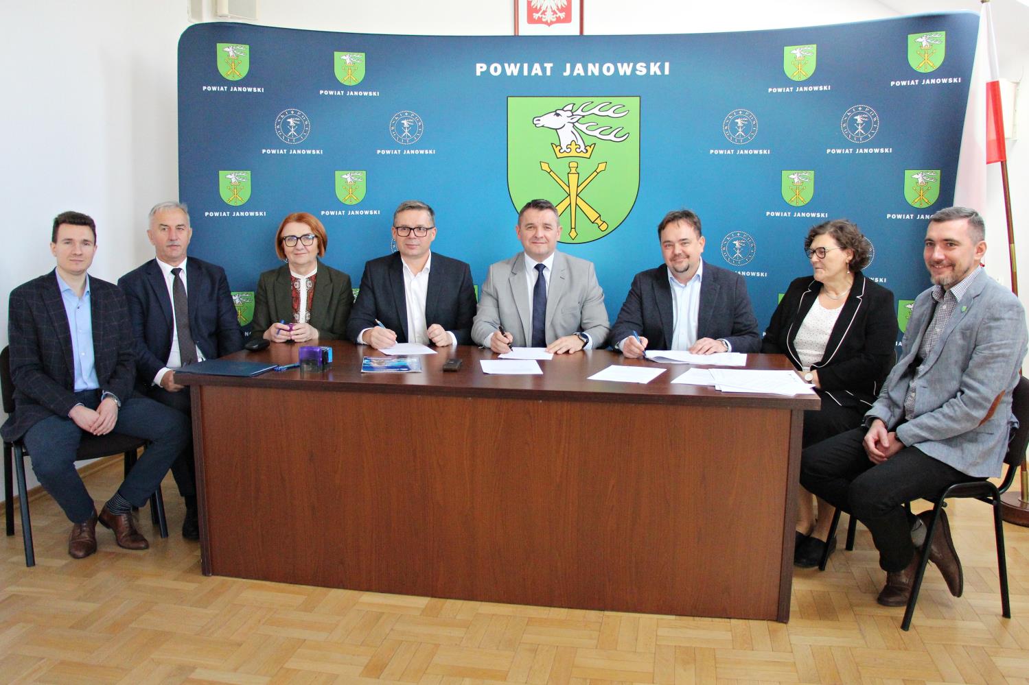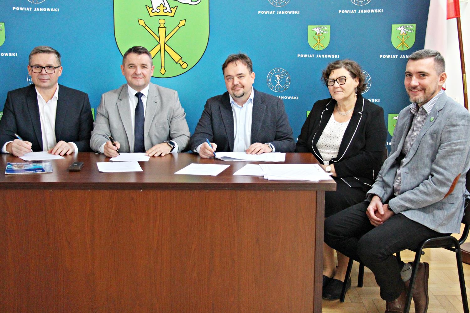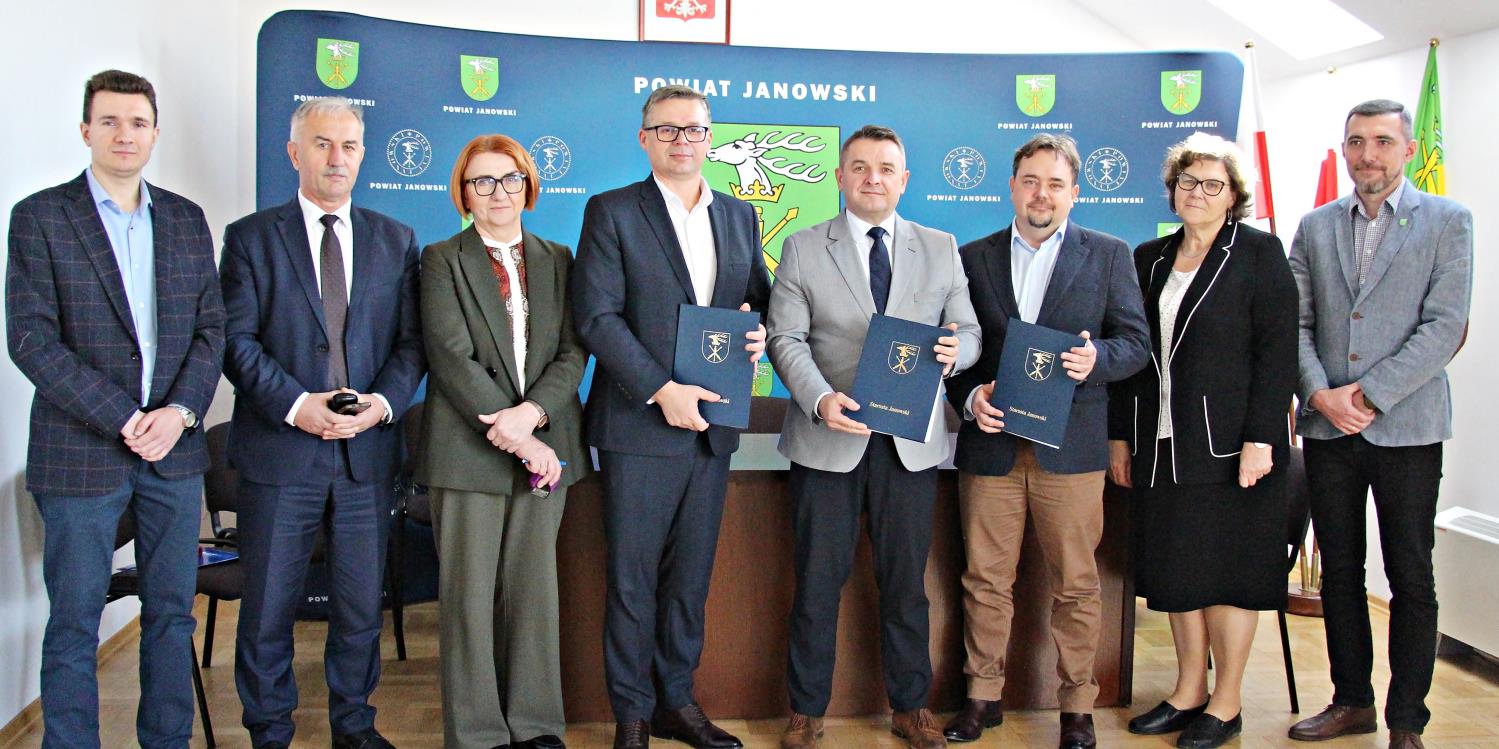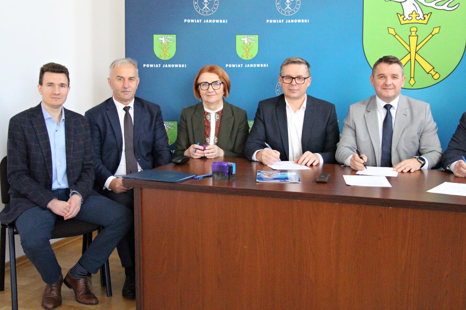 Umowę z wykonawcą i inspektorem nadzoru z ramienia Powiatu Janowskiego podpisali: Artur Pizoń – Starosta Janowski, Barbara Fuszara – Skarbnik Powiatu i Zenon Zyśko – Wicestarosta Janowski.