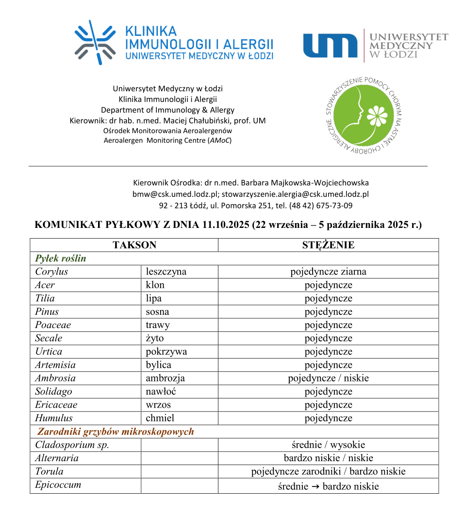 - Komunikat pyłkowy z 11 października 2025 r.