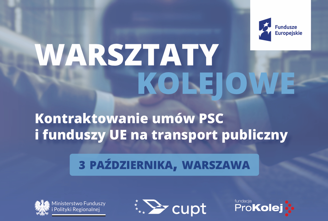 Na początku października w Warszawie odbędzie się druga edycja warsztatów „Kontraktowanie umów PSC i funduszy unijnych na transport publiczny”, współorganizowanych przez Ministerstwo Funduszy i Polityki Regionalnej, Centrum Unijnych Projektów Transportowych oraz Fundację ProKolej. Spotkanie będzie okazją do omówienia kluczowych wyzwań związanych z otwarciem rynku przewozów pasażerskich i pozyskiwaniem środków unijnych na transport publiczny.
