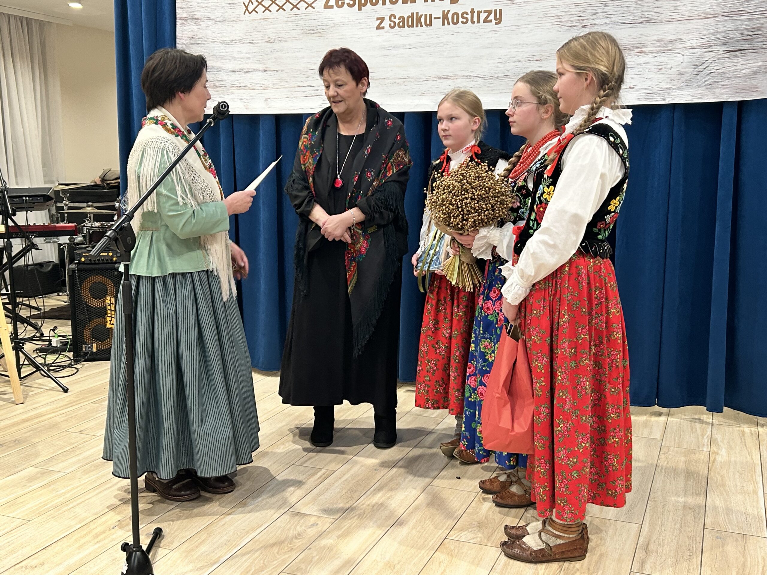 Bazą do działalności obu zespołów była i jest Szkoła Podstawowa im. Jana Pawła II w Sadku – Kostrzy. To właśnie pod jej skrzydłami funkcjonują i mogą się rozwijać oba zespoły. Stąd też to odznaczenie – Krzyż Małopolski dla dyrektor szkoły i jednocześnie kierownika obu zespołów.
