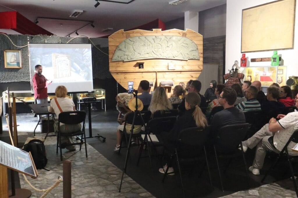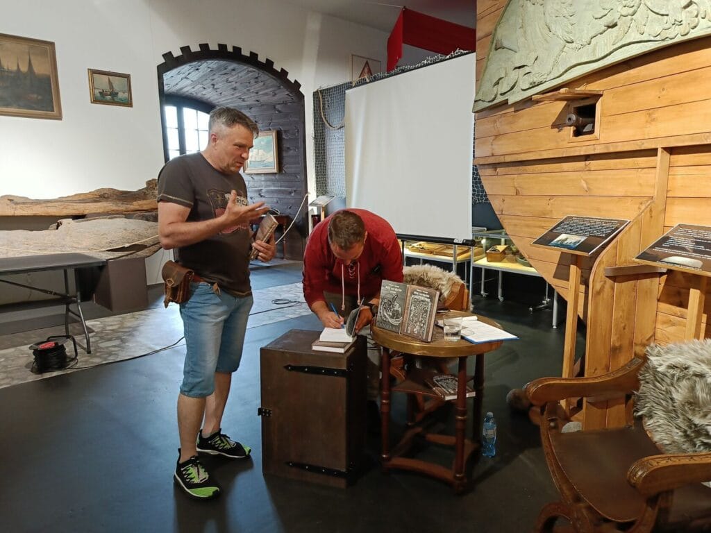15 lipca 2025 r. Po uroczystym otwarciu wystawy morskiej nasi goście zanurzyli się w świat skandynawskich mitów i sag, dzięki autorowi publikacji – filozofowi, wykładowcy akademickiemu, jednocześnie popularyzatorowi nauki i literatury.