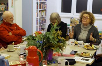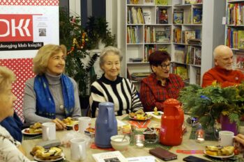 18 grudnia 2025 r. miało miejsce ostatnie w bieżącym roku spotkanie Dyskusyjnego Klubu Książki działającego przy ul. Staszica 9. Klubowicze podjęli dyskusję na temat książki Moniki Jaruzelskiej pt.”Oddech”. Stanowi ona trzecią część cyklu biograficznego, poprzednie tomy to „Rodzina” i „Towarzyszka panienka”. Jest utworem o pewnym etapie w życiu córki gen. Jaruzelskiego. Powstała być może jako forma terapii autorki po śmierci ojca, z którym jak można było przeczytać, była bardzo emocjonalnie związana. Może zamierzeniem pani Moniki było także złagodzenie niechlubnego wizerunku człowieka, który zapisał się w historii Polski jako wojskowy dyktator. Książka ma formę zbioru wspomnień, przemyśleń, anegdot, stanów nastroju, cytatów, które to sugerują, aby zwolnić na chwilę w życiu, zastanowić się lub coś przemyśleć. Lektura otrzymała 5,63 pkt. w skali 10-punktowej. Spotkanie, które jak zawsze upłynęło w przyjaznej atmosferze, na którym nie zabrakło słodkiego poczęstunku i gorących napojów, zakończyło się wzajemnym złożeniem świątecznych i noworocznych życzeń. Kolejne odbędzie się 22 stycznia 2026 r., zaś wybraną lekturą jest „Dom Holendrów” A. Pattchett.