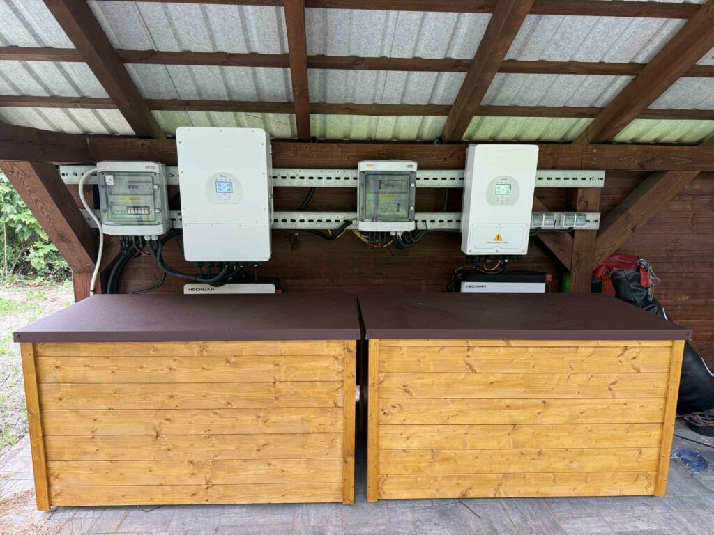 Wybuch wojny za wschodnią granicą i ceny energii też miały wpływ na decyzję o montażu paneli. – Wtedy wydawało mi się to złotym interesem. Nie chciałem się przecież na tym dorobić, tylko wyjść na zero. Przyłączyliśmy się już na nowych zasadach i – jak się okazało, one są średnio dobre. Po 2,5 roku doszliśmy do wniosku, iż nie ma to większego sensu bez magazynu energii – mówi. Pan Dariusz zdecydował się dołożyć dwa magazyny energii. – W lipcu zamontowaliśmy po jednym na każdej instalacji. Dziś wychodzą sporo taniej, niż 3 lata temu, bo pojawiła się nowa forma dotowania Programu Mój Prąd.