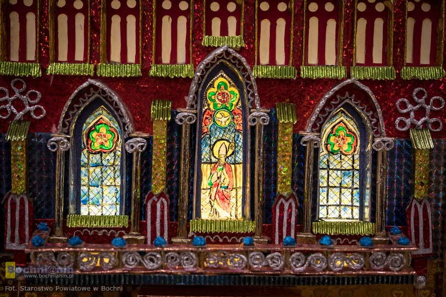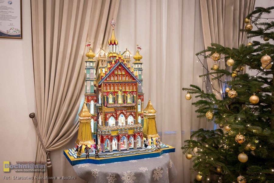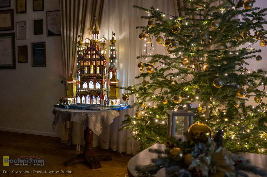 Specjalnie dla Starostwa Powiatowego w Bochni wykonano szopkę bocheńską, zawierającą elementy architektoniczne charakterystyczne dla obiektów z regionu bocheńskiego. Można w niej dostrzec m.in. fragmenty wiśnickiego zamku, Kopalni Soli w Bochni, kościoła św. Mikołaja Bpa w Bochni oraz drewnianą dzwonnicę z Łapczycy. O wyjątkowości dzieła świadczy także jego autor – pan Zbigniew Grzech, urodzony w 1937 roku wybitny twórca szopek krakowskich, inżynier budownictwa i artysta ludowy, silnie związany z tradycją Krakowa.