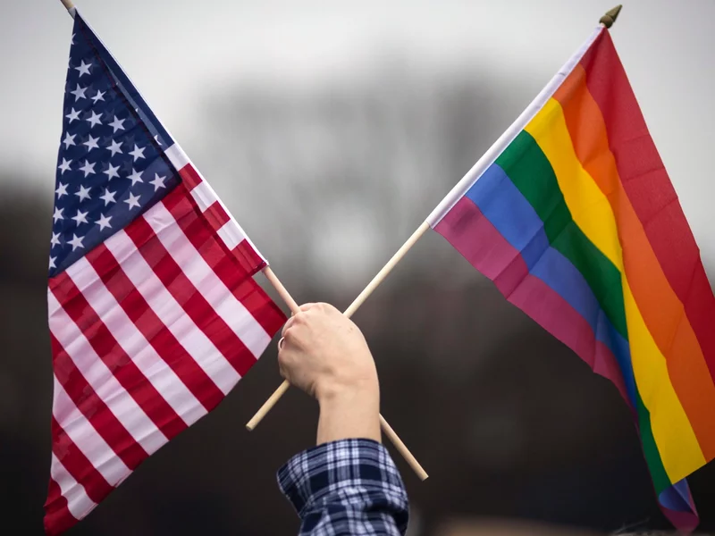 Zdjęcie: Flagi USA i LGBT Źródło: PAP/EPA / JOHN TAGGART
