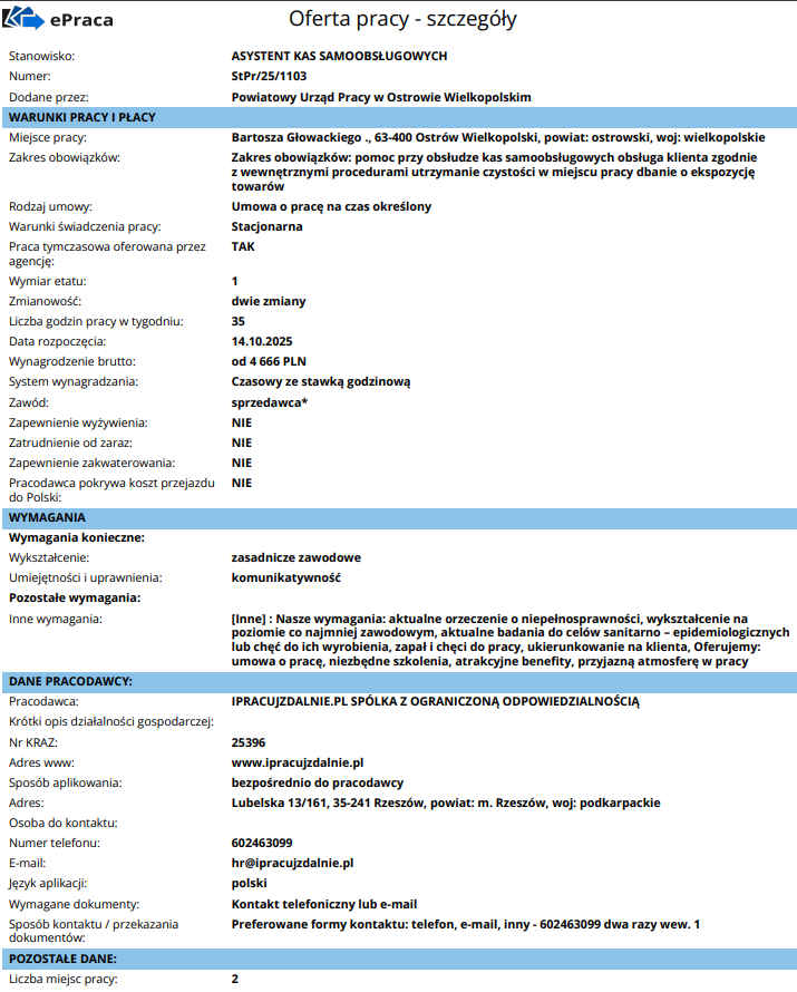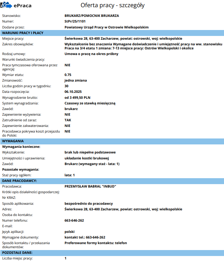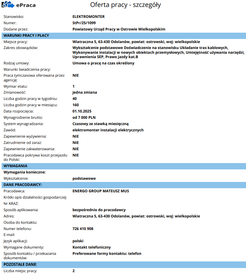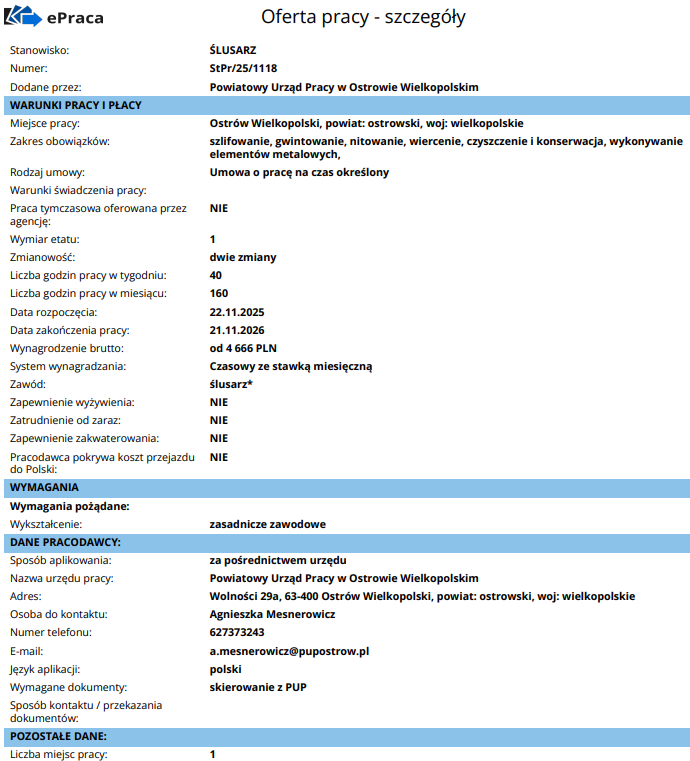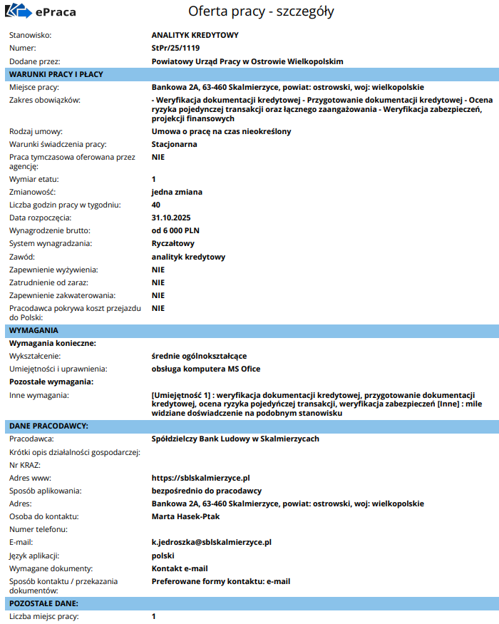 Poniżej prezentujemy oferty pracy z Powiatowego Urzędu Pracy, który pojawiły się w ostatnim tygodniu. Widać spadek nowych ofert pracy. Jednak warto przejrzeć i zobaczyć czy któraś z propozycji może polepszyć nasze warunki do zarobku.