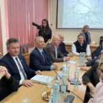 29.01.2026. Staszów. Starostwo Powiatowe w Staszowie. Spotkanie przedstawicieli PKP S.A i PKP PLK z samorządowcami, władzami województwa i przedstawicielami rządu / Fot. Grażyna Szlęzak-Wójcik – Radio KielceWicewojewoda świętokrzyski Michał Skotnicki zwrócił uwagę na to, iż w dalszych planach jest również rozszerzenie połączeń kolejowych tak, aby połączyć powiat staszowski z Podkarpaciem, z istniejącymi tam połączeniami pasażerskimi i towarowymi, bo dzisiaj kolej to jest przyszłość i oznacza rozwój.
