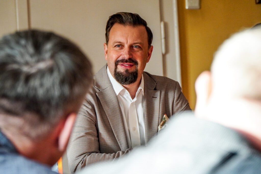 Prezydent Miasta Siemianowice Śląskie Rafał Piech podczas rozmowy z uczestnikami spotkania