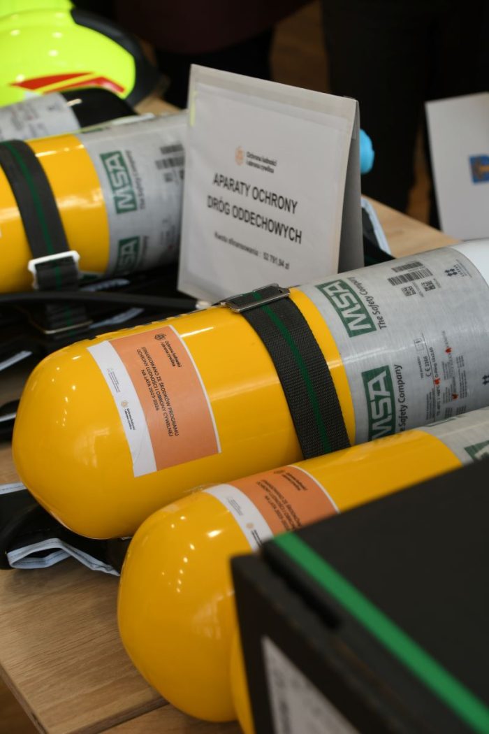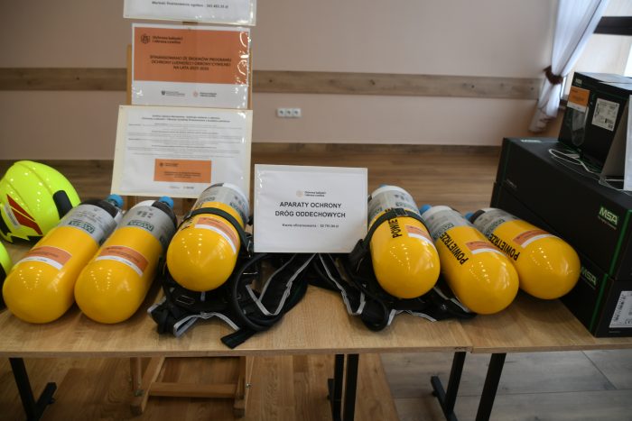 - Aparaty powietrzne ochrony dróg oddechowych MSA AUER z maską, sygnalizatorem bezruchu i butlą kompozytową – 6 kpl. (w tym dla OSP Borówna – 4 kpl oraz dla OSP Rajbrot – 2 kpl)