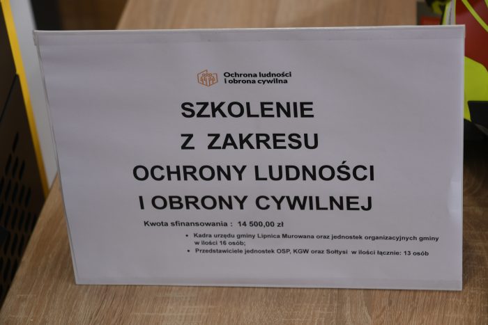 Zrealizowano również szkolenia z zakresu OLiOC dla 29 osób, w tym dla kadry urzędu gminy oraz kierowników jednostek organizacyjnych gminy oraz przedstawicieli OSP, KGW i Sołtysów.