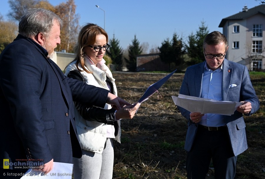Burmistrz wraz ze swoimi zastępcami Filipem Pachem i Wojciechem Woźniczką odwiedziła dziś teren przygotowany pod inwestycję.
