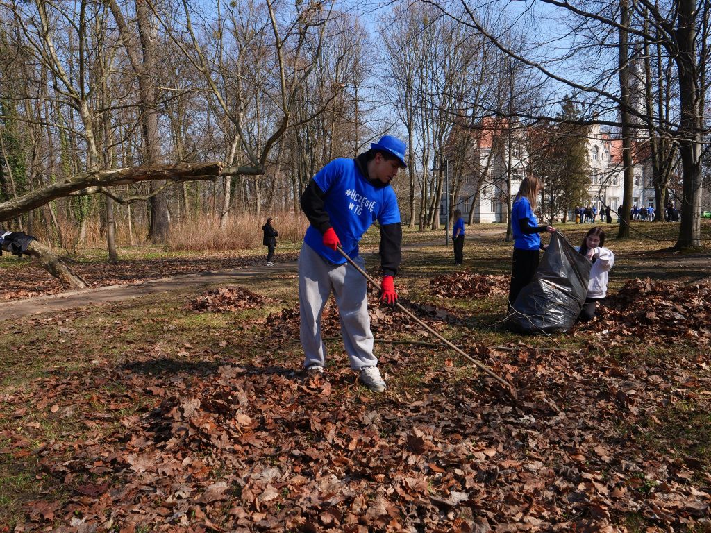 W ramach akcji #uczęsięwtg, w poniedziałek, tj. 23 marca, młodzież szkół ponadpodstawowych zrzeszona w projekcie, wzięła udział w porządkowaniu parku przy Centrum Kultury Śląskiej w Nakle Śląskim. Inicjatywa, realizowana z okazji nadejścia wiosny, spotkała się z dużym zaangażowaniem uczniów, którzy z entuzjazmem przystąpili do pracy.