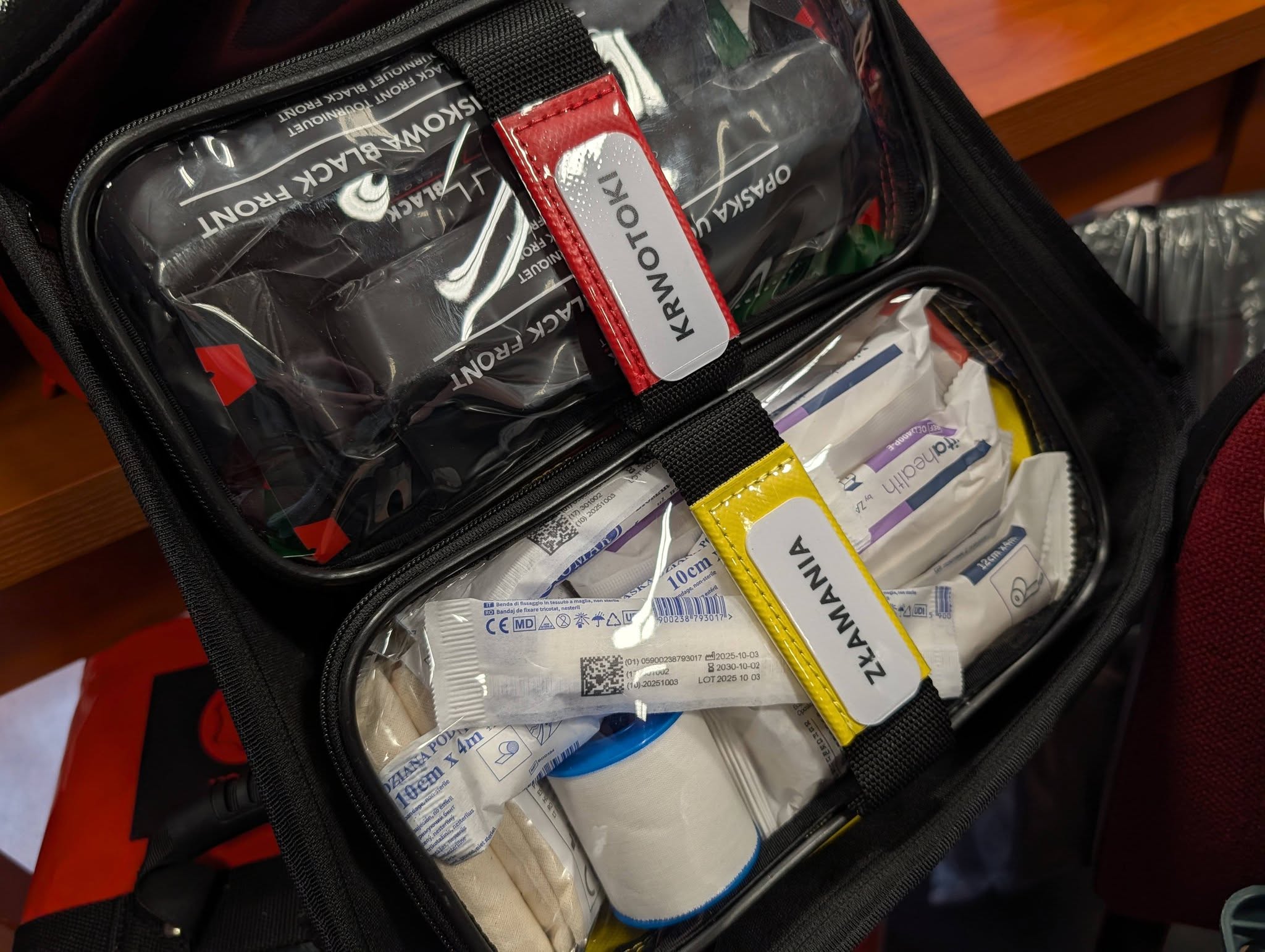 Sprzęt został właśnie przekazany szkołom przez wicestarostę Leonarda Płoszaja. od dzisiaj będzie służył do nauki pierwszej pomocy, ratownictwa medycznego, reagowania kryzysowego, także z elementami medycyny pola walki. Oby jak najrzadziej przydał się w prawdziwym życiu. Ale jeżeli już – dobrze, iż ktoś wcześniej przećwiczył każdy ruch.
