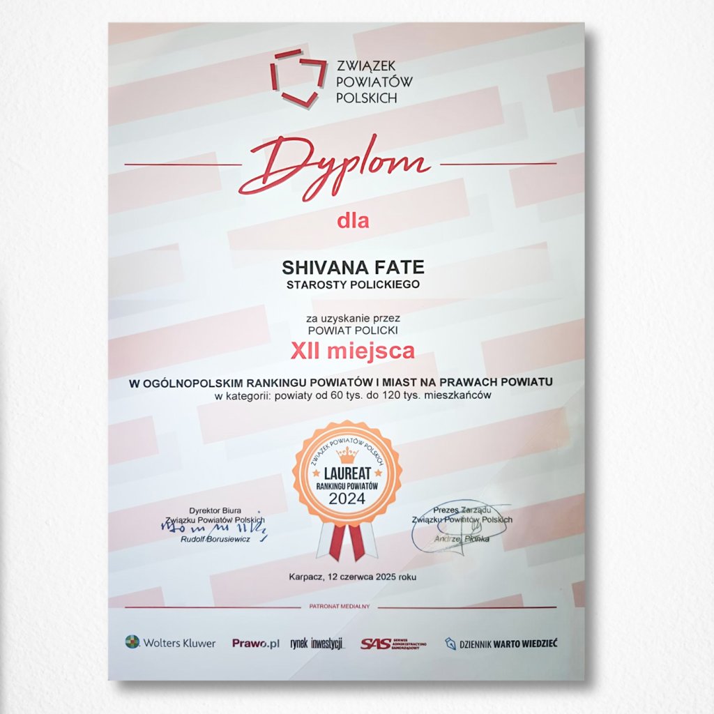 – To wyjątkowe wyróżnienie – przyznawane niezależnie, za całokształt działań samorządu – potwierdza, iż nasza codzienna praca na rzecz mieszkańców, rozwoju, edukacji, zdrowia, ekologii i inwestycji przynosi realne efekty. Dziękuję wszystkim moim współpracownikom z którymi razem realizujemy tę misję na rzecz rozwoju naszego samorządu” – mówi Shivan Fate, Starosta Policki.