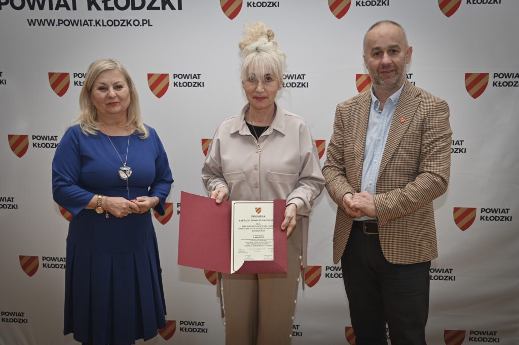 W Starostwie Powiatowym w Kłodzku odbyło się uroczyste wręczenie promes w ramach konkursu „Kultura w powiecie kłodzkim”. Dokumenty potwierdzające przyznanie dofinansowania przekazali starosta Małgorzata Jędrzejewska‑Skrzypczyk oraz członek Zarządu Powiatu Kłodzkiego Robert Duma.