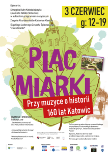 plakat „Przy muzyce o historii – 160 lat Katowic”Pragniemy, by jubileusz 160 – lat Katowic był nie tylko okazją do wspomnień, ale także impulsem do myślenia o przyszłości – szczególnie tej, która dotyczy jakości życia w naszym mieście i troski o środowisko naturalne.