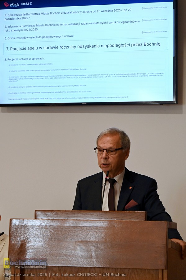 – Jesteśmy miastem, które poza tym, iż może się szczycić, iż jest miastem z nadania królewskiego, górniczego, jesteśmy jednocześnie jednym z tych miast, które jako pierwsze odzyskały w 1918 roku niepodległość i tak naprawdę to 31 października jest tym szczególnym dniem. Grupa środowisk obywatelskich, stowarzyszeń w Bochni podjęła taką inicjatywę, jej inicjatywą jest właśnie ten apel, który za moment państwu odczytam i zaproponuję byśmy go przyjęli przez aklamację, by ten dzień, pamięć o tych wydarzeniach uszanować, również zważywszy na to, co się dzieje wokół nas, wokół Polski – powiedział Jan Balicki, przewodniczący Rady Miasta Bochnia.