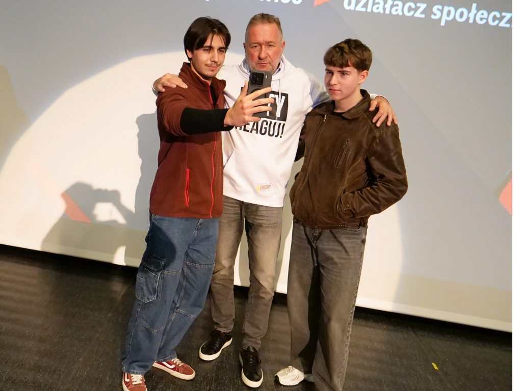 Na zakończenie spotkania poruszył także istotny temat hejtu w przestrzeni publicznej i w internecie, wskazując na jego negatywne skutki oraz podkreślając potrzebę budowania wzajemnego szacunku i odpowiedzialności za słowo. Zachęcał młodzież do reagowania na przejawy hejtu oraz do tworzenia środowiska opartego na życzliwości i wsparciu.