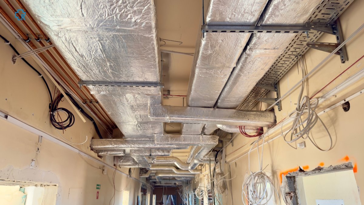 - Firma Budimex zakończyła już wszystkie drobne korekty wynikające ze zmian projektowych, a także montaż nowych instalacji sanitarnych i ścianek działowych, dzięki którym powstaną dodatkowe łazienki. Na finiszu są prace przy systemach wentylacji i klimatyzacji, a także wykończenia tynkarskie w pomieszczeniach. Równolegle postępuje montaż instalacji elektrycznych, systemu sygnalizacji pożaru (SSP) oraz TV dla pacjentów - wymienia Wiktoria Kościelniak, rzeczniczka RSS.