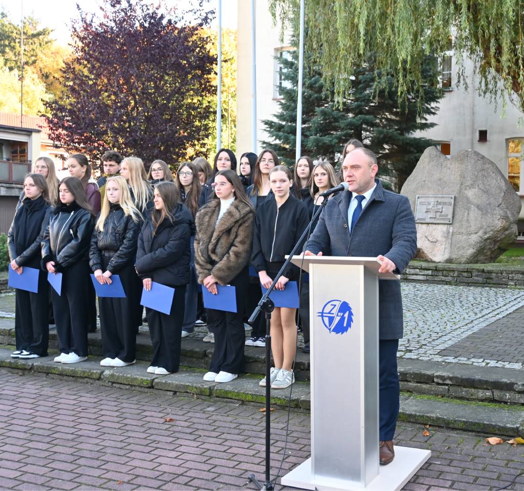 20 października w Zespole Szkół nr 1 odbył się uroczysty apel, podczas którego odsłonięto pamiątkową tablicę poświęconą patronowi skweru.