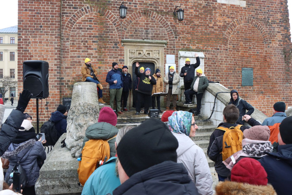 Rynek Główny w Krakowie w sobotę po południu wypełnił się dźwiękami szant. Plenerowe wydarzenie rozpoczęło się o godzinie 14:00 i od początku przyciągało uwagę osób przebywających w centrum miasta.