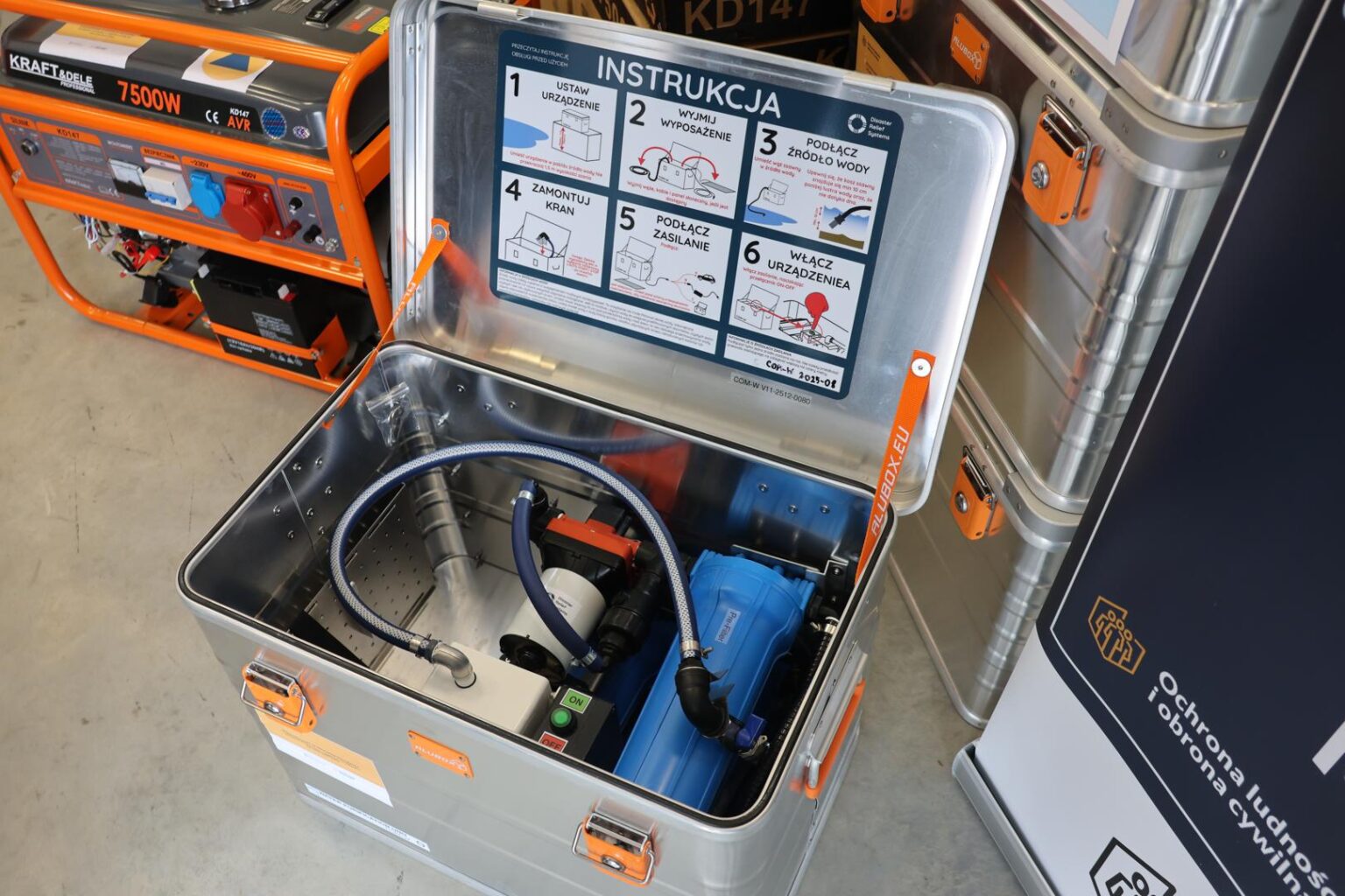 Dodatkowo flota sprzętowa wzbogaciła się o mobilną syrenę cyfrową oraz komplety odzieży ochronnej (wodery i zestawy przeciwdeszczowe).